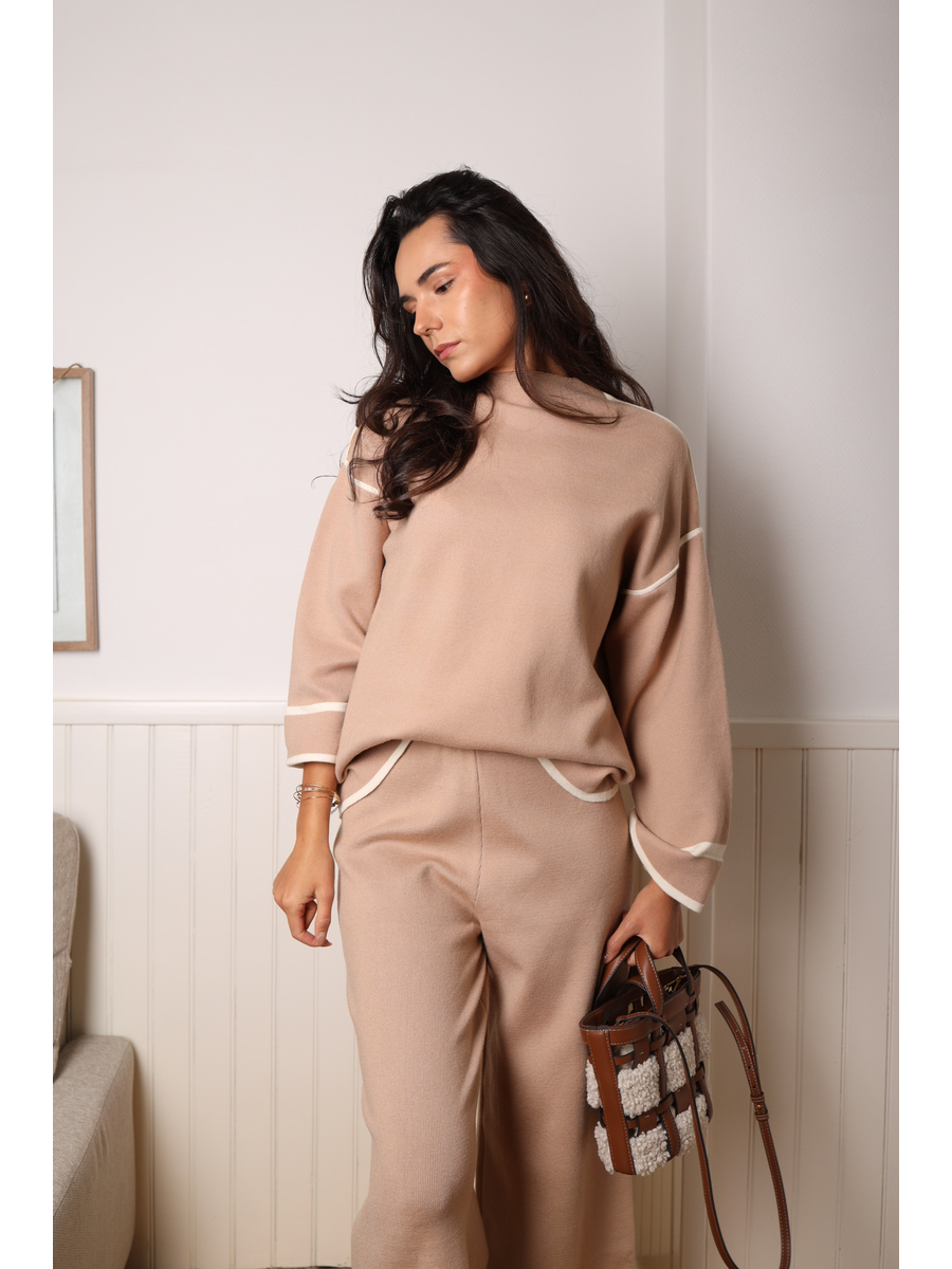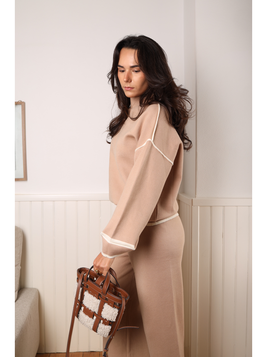 Ce pull camel aux surpiqûres écrues est l’alliance parfaite entre élégance et modernité. Sa couleur chaleureuse et ses finitions surpiquées en contraste apportent une touche d’originalité discrète qui sublime chaque tenue.
