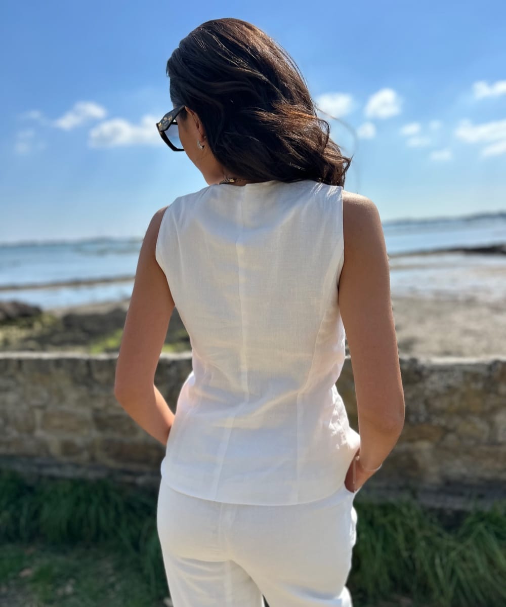 Ce gilet sans manches blanc est l’accessoire parfait pour apporter une touche de légèreté et d’élégance à vos tenues estivales ou de cérémonie. Sa coupe fluide et son tissu léger en font un incontournable de la saison.